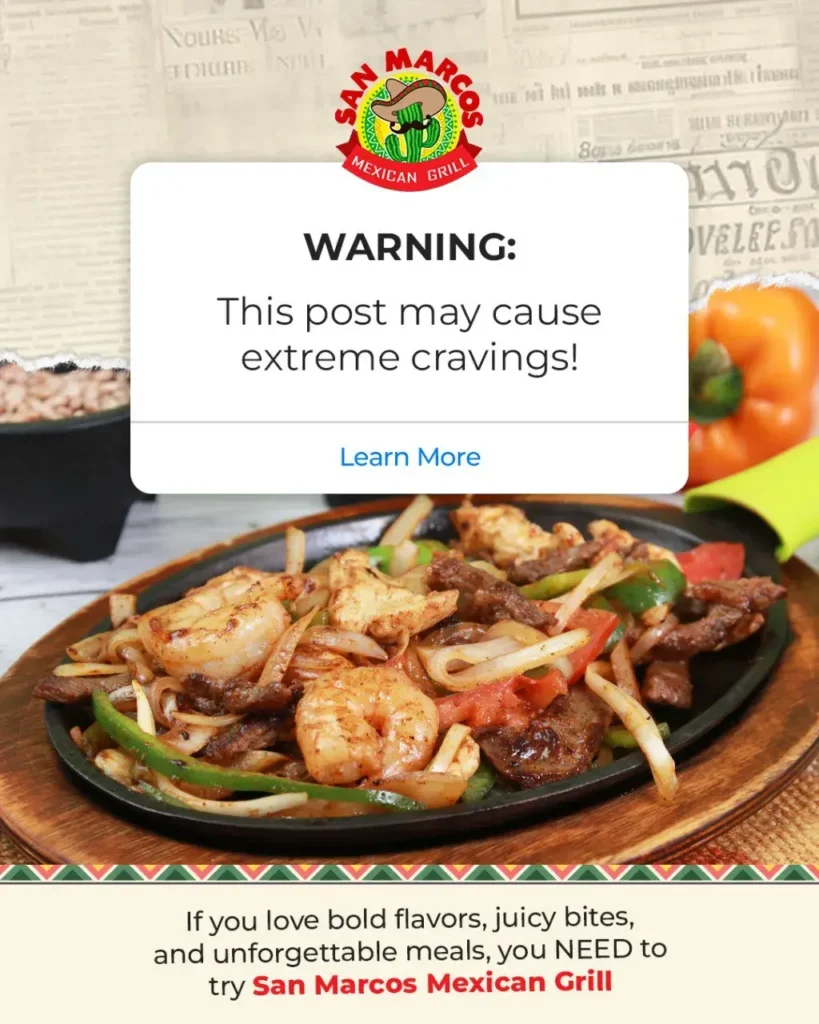 San Marcos Mexican Grill was born 12 years ago, when the brothers Gomez with an inspiring story full of perseverance, open the first restaurant. They every day are dedicated to bringing the quality of delicious dishes with the heart in everything they do. San Marcos Mexican Grill, located in Bainbridge, Cairo and Thomasville in Georgia, has brought the taste of authentic and fresh Mexican food for more of 12 years. In San Marcos, the emphasis is on local farm fresh ingredients, prepared passionately by talented chefs, making us remember with every bite the unique flavor of the whole Mexican region, with quality and excellent service. Also we can make a highly enjoyable margarita for you and your friends to savor. As an authentic Mexican restaurant our margaritas are delicious, refreshing and tasty.